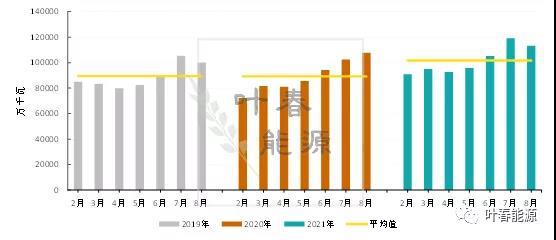2021年6月、7月的全國最高用電負(fù)荷分別達(dá)10.5億千瓦和11.9億千瓦,接近我國火電總裝機(jī)容量。截至2021年8月底,全國全口徑火電裝機(jī)12.7億千瓦。