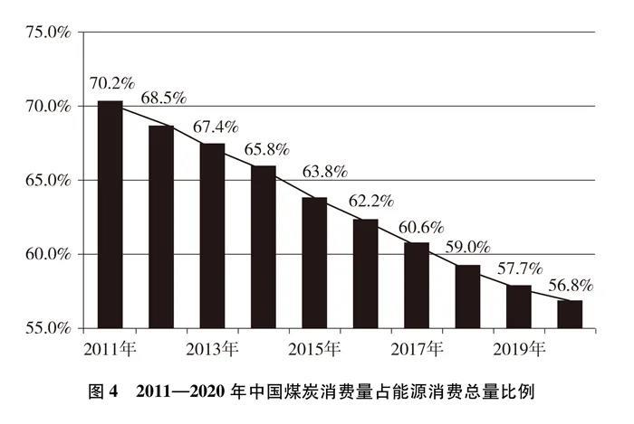 能源消費(fèi)結(jié)構(gòu)向清潔低碳加速轉(zhuǎn)化。為應(yīng)對(duì)化石能源燃燒所帶來(lái)的環(huán)境污染和氣候變化問(wèn)題,中國(guó)嚴(yán)控煤炭消費(fèi),煤炭消費(fèi)占比持續(xù)明顯下降。2020年中國(guó)能源消費(fèi)總量控制在50億噸標(biāo)準(zhǔn)煤以內(nèi),煤炭占能源消費(fèi)總量比重由2005年的72.4%下降至2020年的56.8%。中國(guó)超額完成“十三五”煤炭去產(chǎn)能、淘汰煤電落后產(chǎn)能目標(biāo)任務(wù),累計(jì)淘汰煤電落后產(chǎn)能4500萬(wàn)千瓦以上。截至2020年底,中國(guó)北方地區(qū)冬季清潔取暖率已提升到60%以上,京津冀及周邊地區(qū)、汾渭平原累計(jì)完成散煤替代2500萬(wàn)戶左右,削減散煤約5000萬(wàn)噸,據(jù)測(cè)算,相當(dāng)于少排放二氧化碳約9200萬(wàn)噸。