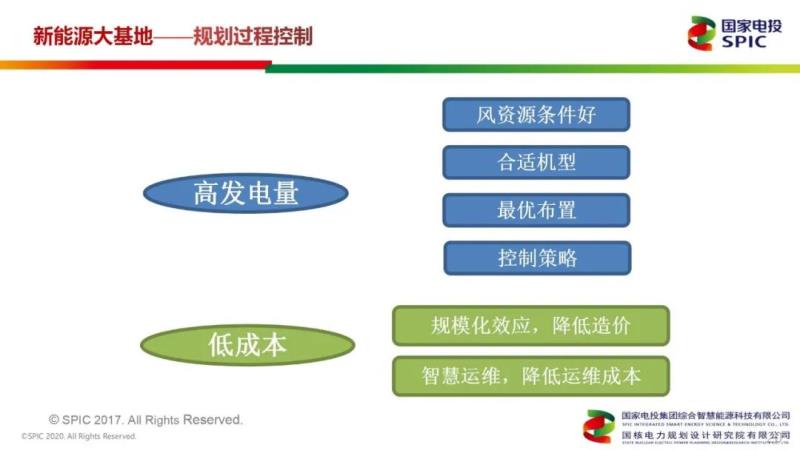 不過(guò)在風(fēng)光基地規(guī)劃中,關(guān)于大基地規(guī)劃過(guò)程的控制存在難度,尤其是風(fēng)電基地的規(guī)劃難度更大。李璟總工重點(diǎn)講了風(fēng)電基地控制的問(wèn)題,他提出要關(guān)注高發(fā)電量和低成本問(wèn)題。如何做到提高發(fā)電量?包括風(fēng)資源條件好,有合適的機(jī)型、最優(yōu)的布置以及控制策略;如何低成本?包括規(guī)?;?yīng)降低造價(jià),智慧運(yùn)維,降低運(yùn)維成本。
