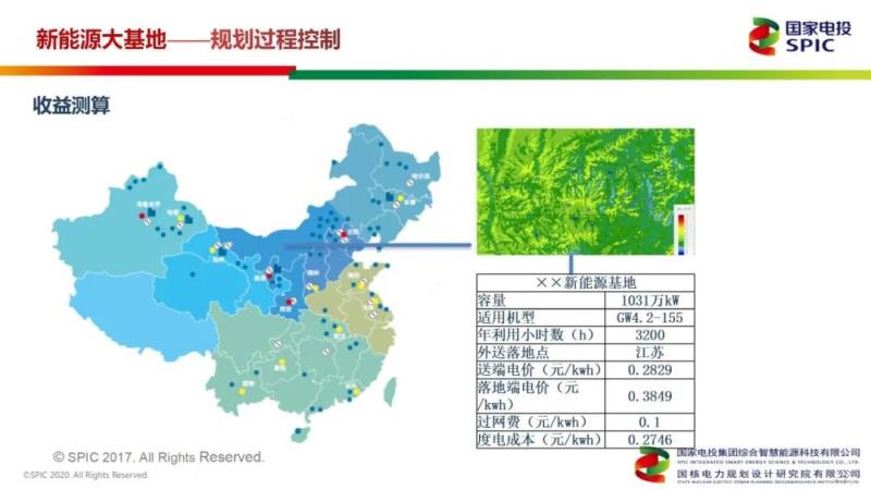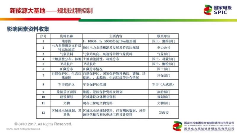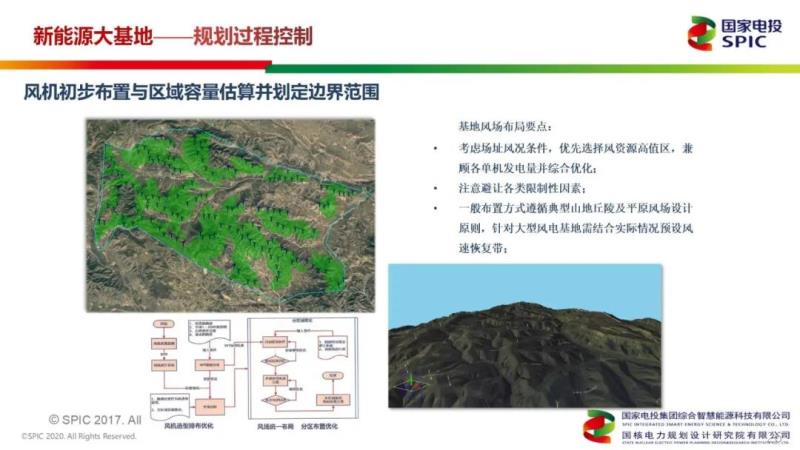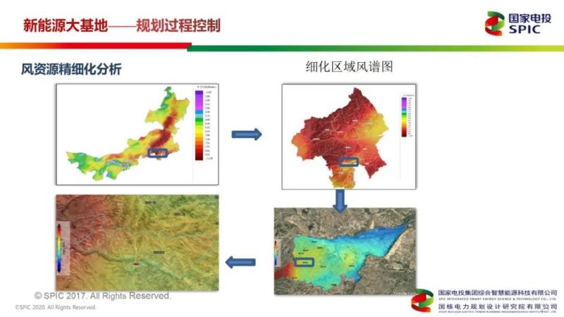 “對(duì)于風(fēng)電基地過(guò)程規(guī)劃控制,首先要進(jìn)行風(fēng)資源精細(xì)化分析。從某一個(gè)省開(kāi)始,規(guī)劃一片區(qū)域,對(duì)這片區(qū)域不停細(xì)化,通過(guò)專(zhuān)業(yè)軟件細(xì)化到要規(guī)劃的基地范圍內(nèi),風(fēng)資源的數(shù)據(jù)也更細(xì)化,最終聚焦到規(guī)劃的基地上來(lái)?!崩瞽Z說(shuō)道,“整個(gè)基地規(guī)劃的影響因素,大概分12類(lèi),包括地形圖、電力系統(tǒng)規(guī)劃文件級(jí)特高壓通道、氣象資料、土地屬性分布、林地、衛(wèi)星航片等。在規(guī)劃階段,對(duì)這些影響因素以及生態(tài)紅線(xiàn)范圍一定要特別的注意?!?