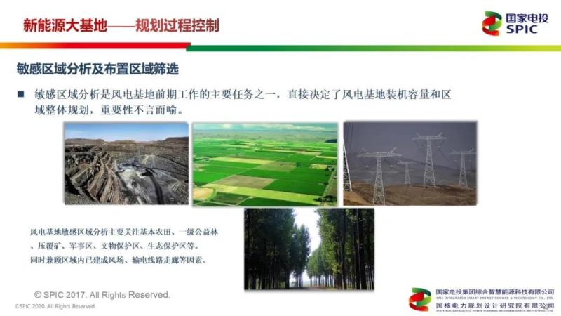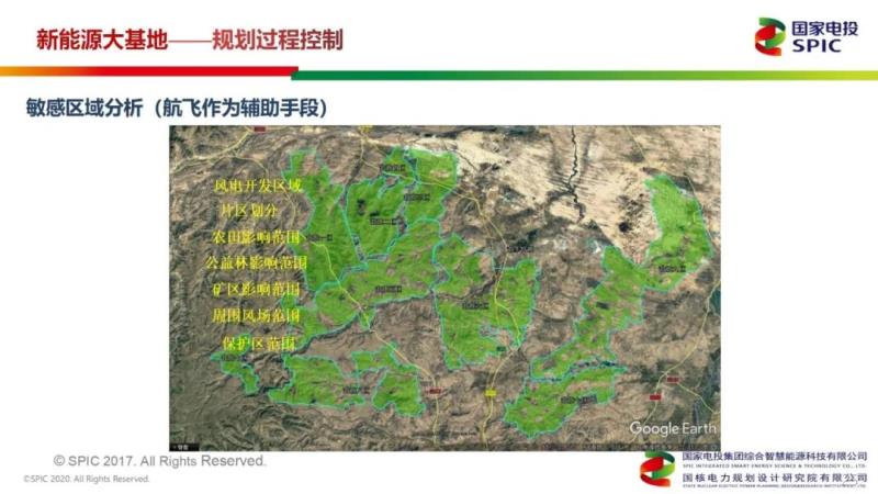 此外,敏感區(qū)域分析也是風(fēng)電基地前期工作的主要任務(wù)之一,直接決定了風(fēng)電基地裝機(jī)容量和區(qū)域整體規(guī)劃,重要性不言而喻。敏感區(qū)域分析時(shí),航飛可以作為輔助手段。風(fēng)電基地敏感區(qū)域分析主要關(guān)注基本農(nóng)田、一級(jí)公益林、壓覆礦、軍事區(qū)、文物保護(hù)區(qū)、生態(tài)保護(hù)區(qū)等。同時(shí)兼顧區(qū)域內(nèi)已建成風(fēng)場(chǎng)、輸電線(xiàn)路走廊等因素。風(fēng)電基地初步布置確定后,分片劃定基地邊界范圍,并根據(jù)資源、送出、建設(shè)條件等優(yōu)劣排序。不過(guò),李璟表示,送出問(wèn)題一直存在很大挑戰(zhàn),我們需要共同努力克服問(wèn)題。