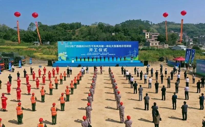 10月25日,2021年廣西橫州260萬千瓦風(fēng)光儲(chǔ)一體化大型基地示范項(xiàng)目開工儀式在橫州市馬山鎮(zhèn)平安村天堂嶺舉行,該示范項(xiàng)目是廣西2021年單體最大的一體化項(xiàng)目,總投資約 128 億元。
