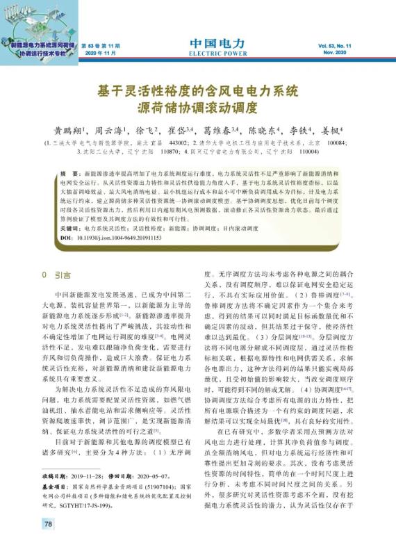 HUANG Pengxiang, ZHOU Yunhai, XU Fei, et al. Source-load-storage coordinated rolling dispatch for wind power integrated power system based on flexibility margin[J]. Electric Power, 2020, 53(11): 78-88.