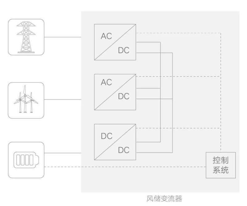 2021年CWP國際風(fēng)能展中,陽光電源發(fā)布風(fēng)儲一體變流器,該變流器由6.6MW雙饋風(fēng)電變流器直流側(cè)配比10%功率的儲能變流單元,通過風(fēng)電變流與儲能變換一體化控制,深度融合風(fēng)電變流與儲能功能的場景化應(yīng)用。
