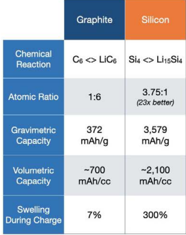 石墨與硅陽極的比較。(圖片來源:The-Future-of-Energy-Storage)