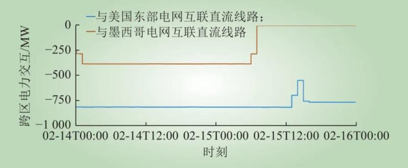 圖6 2月14日—16日得州與周邊電網(wǎng)電力交互情況