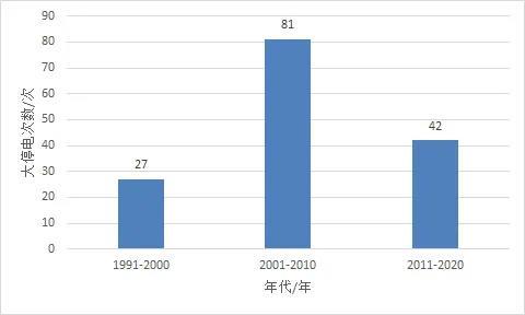 圖1 國外大停電次數(shù)按年代(a)及