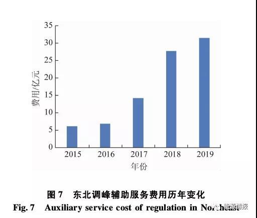 調(diào)峰輔助服務(wù)市場已成為目前刺激火電靈活性改造最主要的市場要素,市場規(guī)模不斷擴(kuò)大。一方面,市場范圍由初期的東北帝王擴(kuò)展到東北、山西、福建、山東、新疆、寧夏、甘肅、廣東等8個(gè)試點(diǎn),并將在全國各省區(qū)全面鋪開。另一方面,市場交易電量與費(fèi)用隨著可再生能源接入比例的升高而出增加,圖7給出了東北調(diào)峰輔助服務(wù)費(fèi)用的歷年變化,調(diào)峰輔助費(fèi)用的規(guī)模由初期的5億元左右上升至2019年的30多億元。許多電廠的盈利模式發(fā)生了根本轉(zhuǎn)變,靈活性改造收入占比迅速攀升,一些第三方投資主體也通過合同能源管理,甚至獨(dú)立調(diào)峰主體等方式參與其中。
