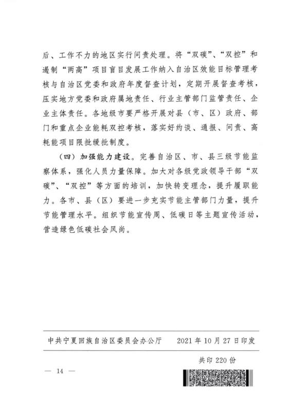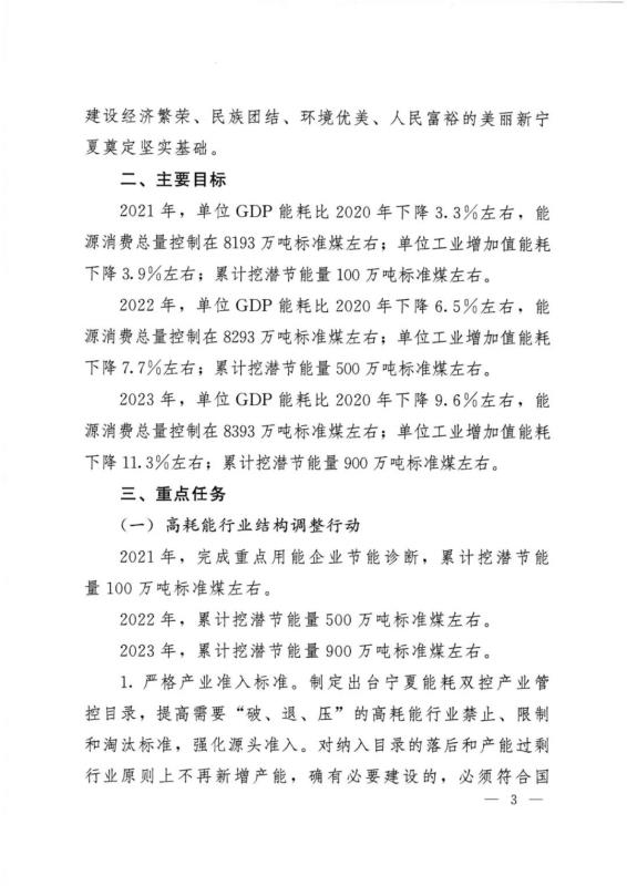 中國儲(chǔ)能網(wǎng)訊:近日,寧夏回族自治區(qū)黨委辦公廳、人民政府辦公廳發(fā)布關(guān)于印發(fā)《寧夏回族自治區(qū)能耗雙控三年行動(dòng)計(jì)劃(2021—2023年)》的通知。