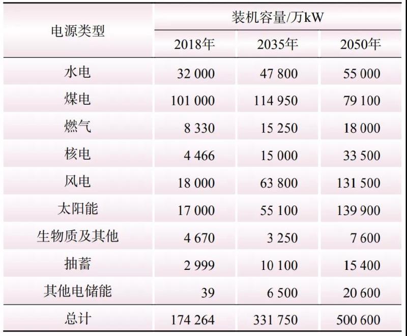 表1 基準(zhǔn)情景下全國(guó)電源總體裝機(jī)情況
