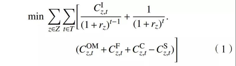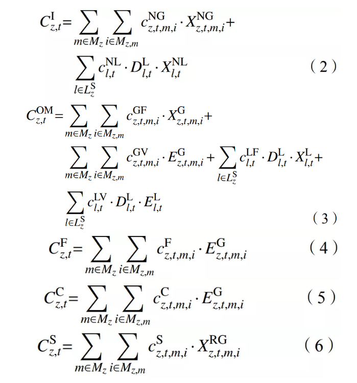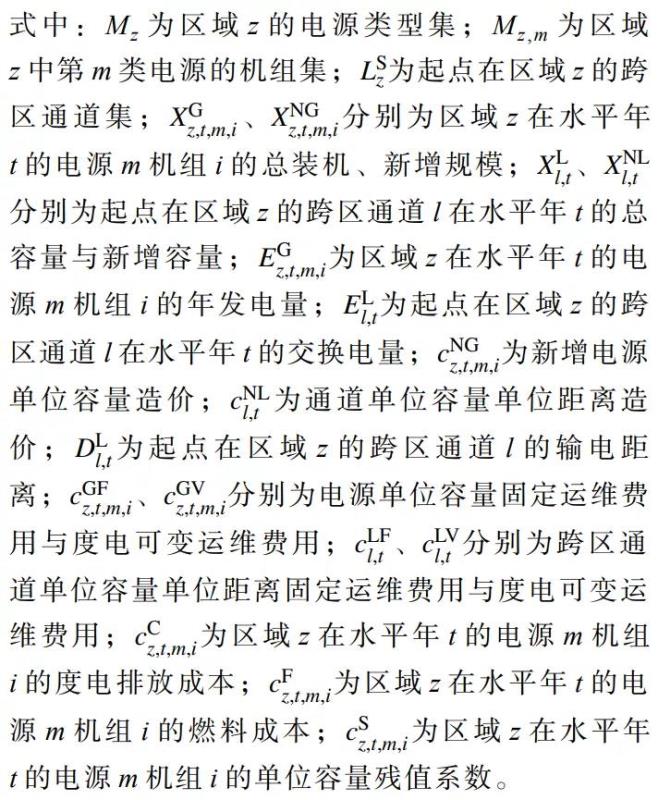 協(xié)同推進(jìn)核電與新能源及其他靈活性電源的投產(chǎn)規(guī)模、布局及時(shí)序直接關(guān)系到中國(guó)能源轉(zhuǎn)型的整體節(jié)奏與進(jìn)程。本文依托國(guó)網(wǎng)能源院自主研發(fā)的電力系統(tǒng)規(guī)劃軟件GESP[16-18](模型如圖2所示),以全社會(huì)電力供應(yīng)總成本最低為目標(biāo)(如式(1)所示),統(tǒng)籌考慮能源結(jié)構(gòu)調(diào)整、污染物減排、溫室氣體排放控制等因素,在滿足電力電量平衡、調(diào)峰平衡等約束前提下,優(yōu)化求解出核電與新能源及各類電源的開(kāi)發(fā)規(guī)模、布局及投產(chǎn)時(shí)序。