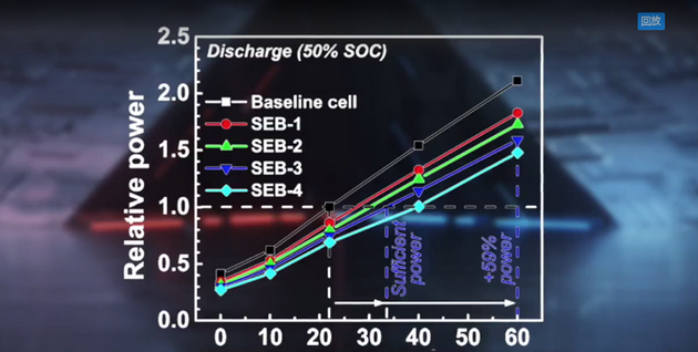還是一樣的熱刺激辦法,我們可以在工作之前把鈍化的電池從常溫加熱到60度,就可以激發(fā)出對(duì)比電池1.7倍的功率,這就是“鈍化電池,加熱使用”的獨(dú)特設(shè)計(jì)原則。我們還發(fā)現(xiàn)了一種熱調(diào)控磷酸鐵鋰電池,它克服了原有的磷酸鐵鋰電池的三大痛點(diǎn):一解決了低溫性能差的問(wèn)題,因?yàn)橛辛藷岽碳さ墓δ?,我們不再依?lài)于磷酸鐵鋰材料本身的低溫性能,比如說(shuō)在冬天里,我們可以讓電池的溫度在30秒之內(nèi)迅速地升溫到0度以上,從而輸出正常的高功率。