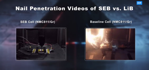 確實(shí)我們把這種鈍化過(guò)的電池進(jìn)行最嚴(yán)苛的針刺實(shí)驗(yàn),即使是采用最大的能量密度的電芯,290瓦時(shí)每公斤而且用最不穩(wěn)定的三元811材料,針刺的最高溫度也不超過(guò)55度,這比磷酸鐵鋰電池針刺溫度60度還要低,也就是說(shuō)我們可以把極高能量密度的三元電池,做的比普通的磷酸鐵鋰電池還安全。