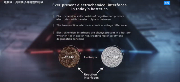 在回答這個(gè)基本的科學(xué)問(wèn)題之前,讓我們先來(lái)看一下這200多年以來(lái)一成不變的電池結(jié)構(gòu)。它有三種材料組成:負(fù)極材料正極材料兩者之間有電解液隔開(kāi),這種結(jié)構(gòu)自然地形成了兩種界面。一存在于正極材料和電解液之間;二是在負(fù)極材料和電解液之間,而這兩種界面之間存在著電勢(shì)差也就給出了電池的電壓。對(duì)鋰離子電池來(lái)講這個(gè)電壓大約在4伏左右,顯然電池內(nèi)的反應(yīng)界面是永遠(yuǎn)存在的而且一直在工作著,無(wú)論我們使用還是不使用電池,比如說(shuō)我們把電動(dòng)汽車(chē)停在車(chē)庫(kù)里關(guān)掉汽車(chē),這個(gè)時(shí)候不用電池,但是我們?nèi)匀豢梢詼y(cè)量到電池的最大電壓,這就說(shuō)明電池里的反應(yīng)界面仍然存在而且活躍地工作,而這個(gè)永遠(yuǎn)存在的反應(yīng)界面剛好是電池的安全隱患和衰老的最根本原因。