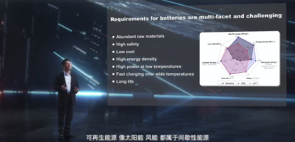 電池儲(chǔ)能的應(yīng)用之大影響之深,也決定了它面臨多維度的巨大挑戰(zhàn),它需要非常豐富大量的成本低廉的原材料,要有極高的安全性,能夠保障人們的生命和財(cái)產(chǎn)安全,還要高能量密度高功率可快充長(zhǎng)壽命,還有無(wú)論炎熱地帶和寒冷地區(qū),電池必須在全溫域都保持良好的性能壽命和安全性。