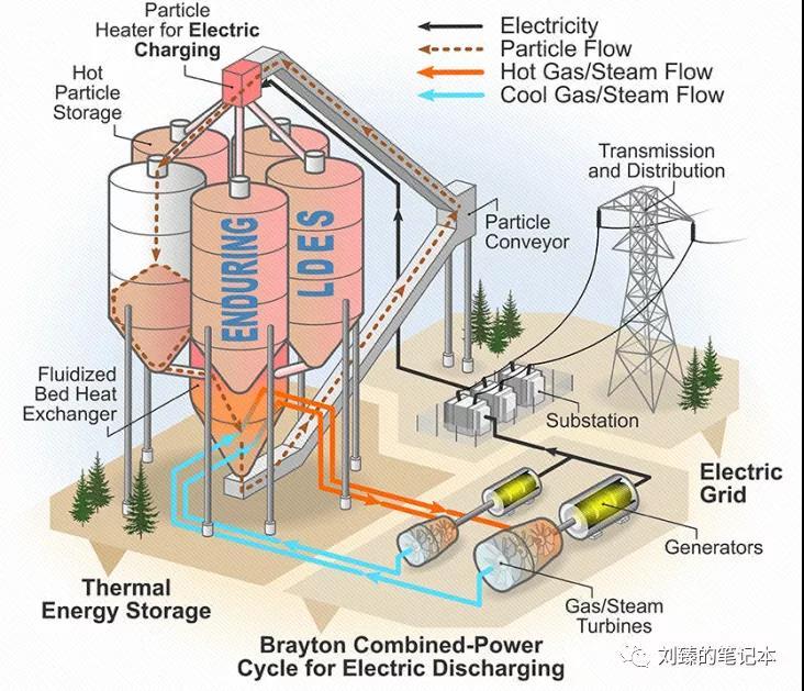 一旦沙子被加熱,它就會被送入混凝土制成的絕緣筒倉進(jìn)行儲存。當(dāng)再次需要儲存的能量時,沙子被送入一個熱交換器,然后將氣體加壓,為渦輪機械和旋轉(zhuǎn)發(fā)電機提供動力,再次產(chǎn)生電力。
