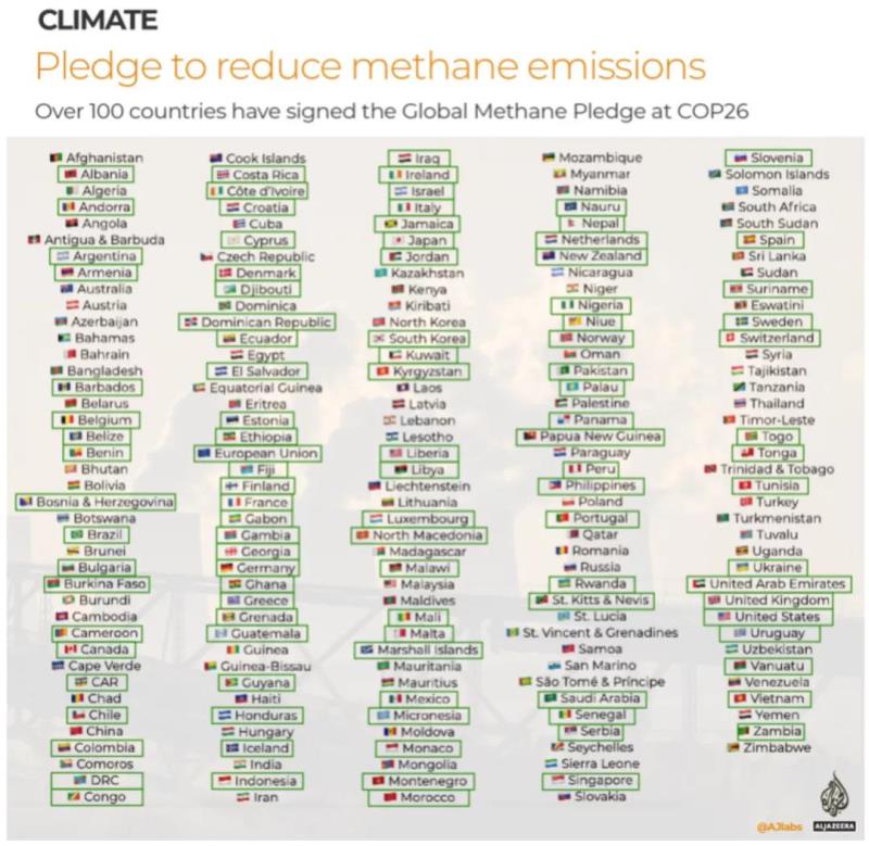 3、承諾在COP26中減少甲烷排放的國家