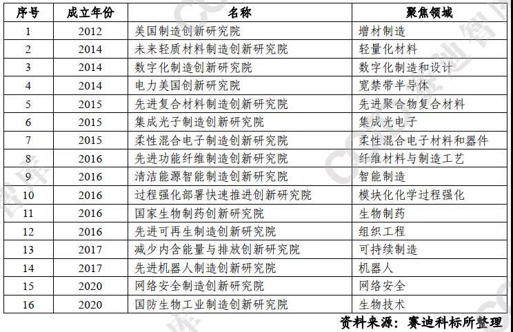 制造業(yè)創(chuàng)新研究院是在美國制造業(yè)空心化嚴(yán)重的背景下誕生,旨在促進(jìn)美國傳統(tǒng)制造業(yè)復(fù)興,加快傳統(tǒng)制造業(yè)向先進(jìn)制造業(yè)轉(zhuǎn)型升級,重點(diǎn)聚焦制造工藝、先進(jìn)材料、使能技術(shù)等先進(jìn)制造業(yè)領(lǐng)域。每個創(chuàng)新研究院負(fù)責(zé)一個獨(dú)特而明確的重點(diǎn)領(lǐng)域,面向產(chǎn)品的可制造性、制造流程和技術(shù)進(jìn)行科技創(chuàng)新。
