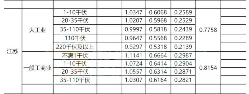 圖/江蘇省電價價差表