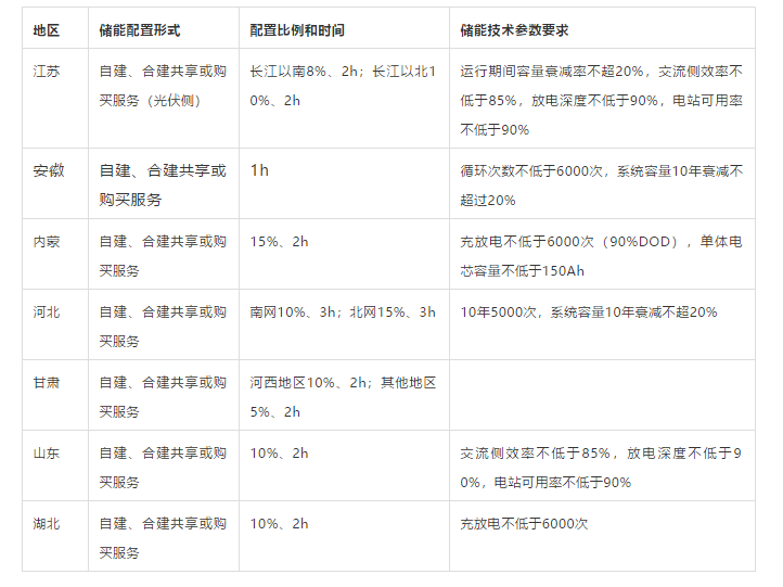 今年以來,各地關(guān)于風(fēng)電、光伏發(fā)電開發(fā)建設(shè)項(xiàng)目配置儲能的方式進(jìn)行了差異化和細(xì)致化的規(guī)定,編者對部分地區(qū)配置儲能相關(guān)文件的梳理,詳見下表。