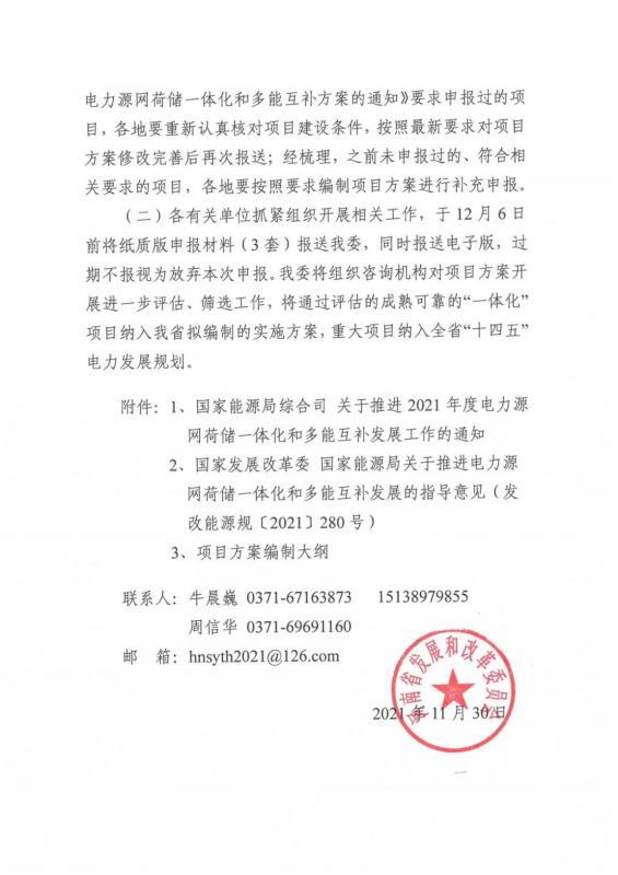中國儲能網訊:11月30日,河南省發(fā)改委發(fā)布了《關于補充申報“十四五”電力源網荷儲一體化和多能互補項目方案》的通知。按照“先行先試、逐步推廣”的原則,在今年上半年河南發(fā)改委組織申報項目的基礎上,再次補充申報“一體化”項目。