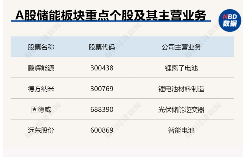 由于電化學(xué)儲(chǔ)能發(fā)展前景被普遍看好,A股儲(chǔ)能板塊多只相關(guān)個(gè)股近期表現(xiàn)強(qiáng)勁。