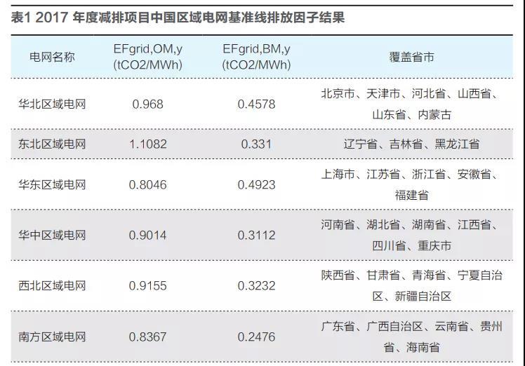 計(jì)算減排因子采用由我國(guó)生態(tài)環(huán)境部應(yīng)對(duì)氣候和變化司研究確定的2017年度減排項(xiàng)目中國(guó)區(qū)域電網(wǎng)基準(zhǔn)線排放因子。
