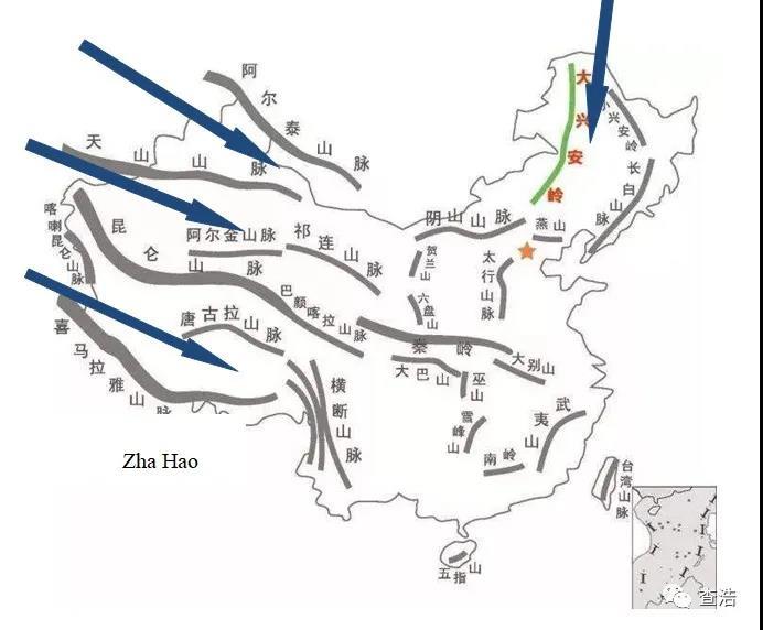 從上圖中,可以看出隨著空間范圍的擴(kuò)大,風(fēng)電的波動(dòng)性會(huì)減小,空間范圍越大、風(fēng)電的整體波動(dòng)性會(huì)越小,說明風(fēng)能資源具有一定的空間互補(bǔ)性和平滑效果。其實(shí)理解這個(gè)特性,通過下面一張圖(中國(guó)山脈分布圖)也可以有個(gè)大體判斷。