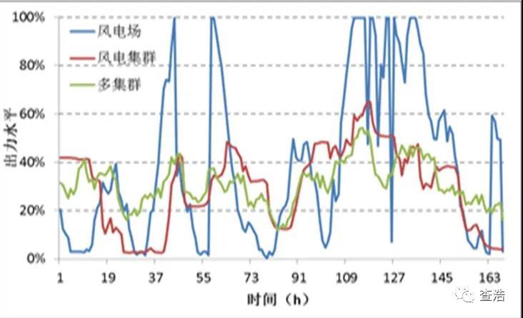 前述初步分析了單個(gè)新能源場(chǎng)站隨機(jī)波動(dòng)大,但地理分布的多個(gè)新能源場(chǎng)站組成的風(fēng)電集群會(huì)降低出力波動(dòng)性,而多個(gè)風(fēng)電集群的出力波動(dòng)會(huì)進(jìn)一步降低。
