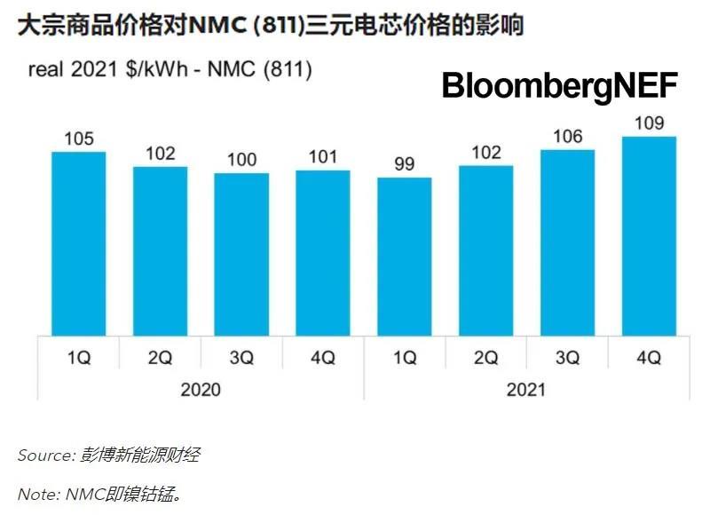 按名義價(jià)值計(jì)算,大宗商品價(jià)格上漲將導(dǎo)致2022年電池組均價(jià)上升3美元/千瓦時(shí)。自彭博新能源財(cái)經(jīng)自2010年開始進(jìn)行電池價(jià)格年度調(diào)研以來,這將是該產(chǎn)業(yè)首次面臨價(jià)格上漲。