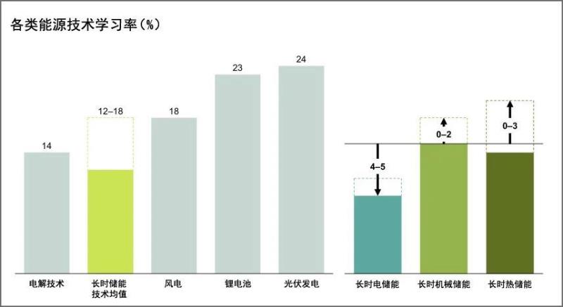 報(bào)告中提出了一個(gè)評(píng)價(jià)儲(chǔ)能技術(shù)經(jīng)濟(jì)性的參數(shù):學(xué)習(xí)率(LearningRate),指在一項(xiàng)儲(chǔ)能技術(shù)目前的規(guī)模與成本的基礎(chǔ)上,規(guī)模每翻一倍,其成本的預(yù)期下降空間。