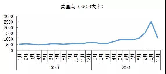 2020年以來秦皇島(5500大卡)現(xiàn)貨價格變化