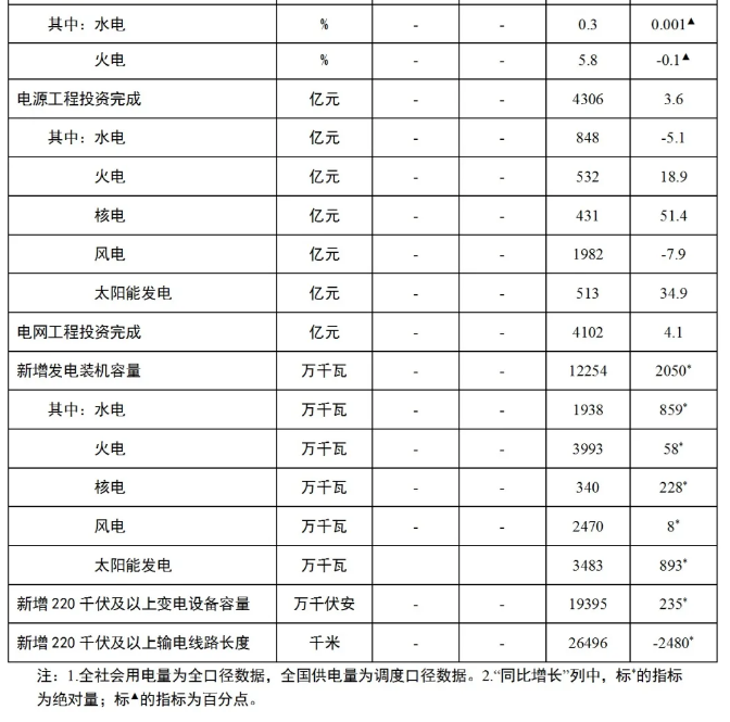 1-11月份,全國主要發(fā)電企業(yè)電源工程完成投資4306億元,同比增3.6%,其中,水電848億元,同比下降5.1%;太陽能發(fā)電513億元,同比增長34.9%。電網(wǎng)工程完成投資4102億元,同比增長4.1%。