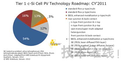 圖1 一線晶硅電池廠商2011年光伏技術(shù)路線圖(來源:NPD Solarbuzz)