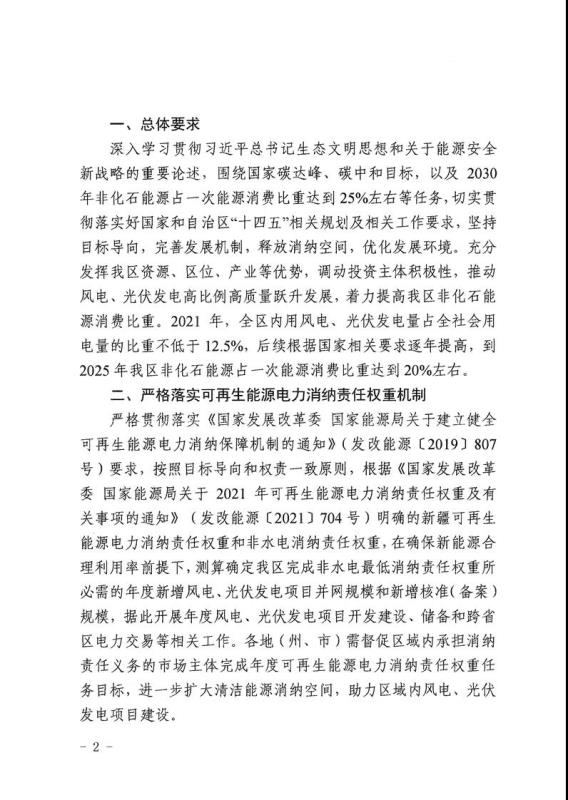 征求意見(jiàn)稿顯示,根據(jù)國(guó)家下達(dá)新疆2021年度非水電最低消納責(zé)任權(quán)重12.5%,2022年非水電消納責(zé)任權(quán)重最低預(yù)期值13.75%的目標(biāo)進(jìn)行測(cè)算,2021年-2022年,新疆新增風(fēng)電、光伏發(fā)電項(xiàng)目保障性規(guī)模約5.26吉瓦。