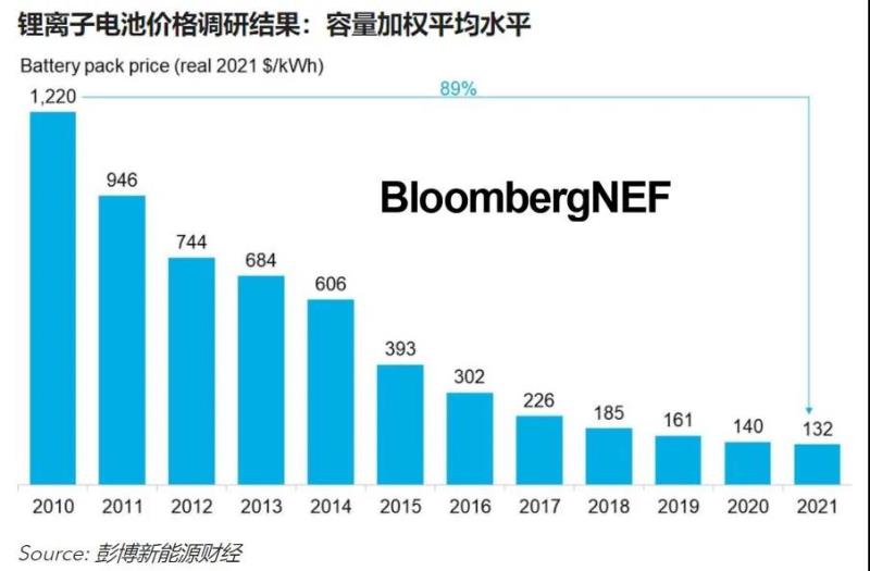 BNEF的2021年電池價(jià)格調(diào)研結(jié)果顯示,盡管原材料和電池零部件價(jià)格不斷走高,2021年鋰離子電池組的容量加權(quán)平均價(jià)格為132美元/千瓦時(shí),比去年下降了6%。