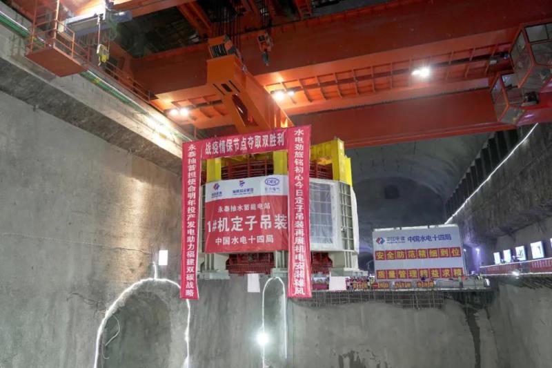 首臺機組定子順利吊裝,是永泰抽水蓄能電站工程建設的重要里程碑事件,標志著首臺機組安裝已進入沖刺階段。后續(xù),永泰抽蓄公司將根據(jù)施工進度開展轉子吊裝、水發(fā)聯(lián)軸等工作,全力確保2022年8月首臺機組并網發(fā)電。