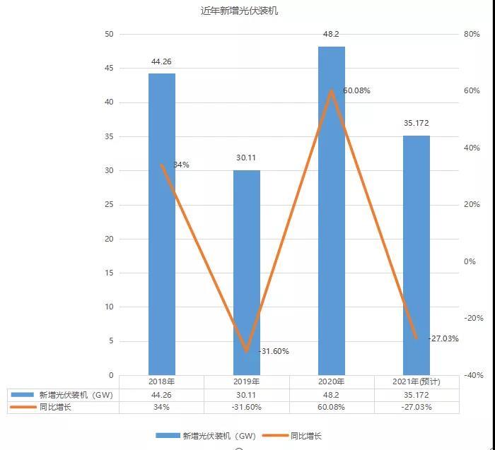 2021年初,中國光伏行業(yè)協(xié)會預測,2021年我國光伏新增裝機規(guī)模將繼續(xù)保持增長,可能達到55吉瓦至65吉瓦。根據(jù)國家能源局發(fā)布的電力工業(yè)數(shù)據(jù),1-10月光伏新增29.31GW,僅比去年同期22.87GW多出6.44GW。10月裝機3.75GW,更是不及去年同期的4.17GW。如果按照目前的裝機速度,不要說今年無法達到光伏行業(yè)協(xié)會預計的55GW裝機目標,超過去年48GW的裝機規(guī)模都無法實現(xiàn)。