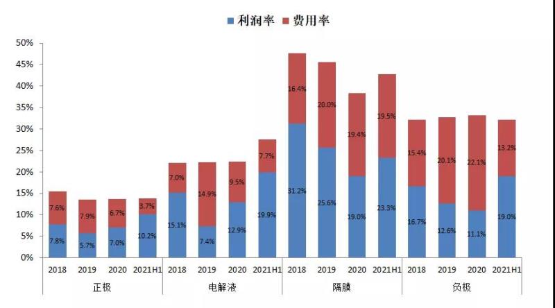 圖11:動力電池四大材料利潤率和費用率情況,資料來源:中國化學(xué)與物理電源行業(yè)協(xié)會動力電池應(yīng)用分會