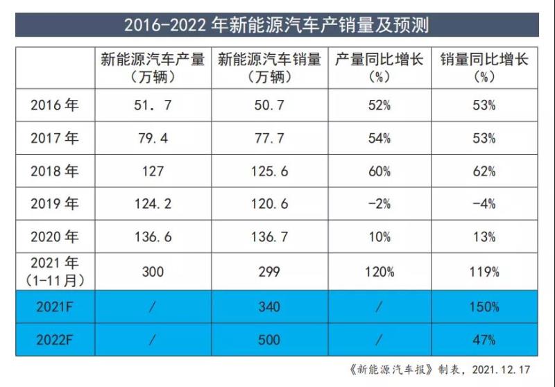 陳士華預測,2022年新能源汽車將達到500萬輛,同比增長47%。他還預測,新能源汽車全年銷量達到340萬輛,同比增長1.5倍。1.5倍是什么概念?該人士認為,1.5倍增長意味著中國新能源汽車行業(yè)正呈現(xiàn)高歌猛進的發(fā)展勢頭。他指出,宏觀經(jīng)濟持續(xù)穩(wěn)定恢復、宏觀政策促進汽車消費、疫情防控持續(xù)向好、海外需求旺盛、芯片供應逐漸恢復、新能源汽車出口增長是對明年汽車市場發(fā)展的有利因素。