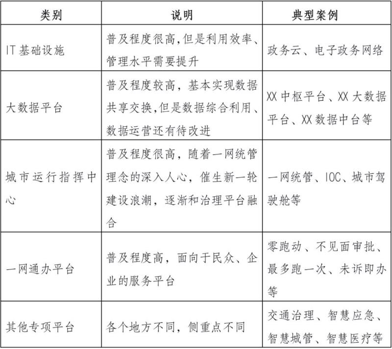 智慧城市已建平臺(tái)的主要類(lèi)型