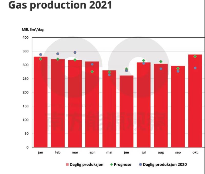 2021年1-10月挪威天然氣產(chǎn)量