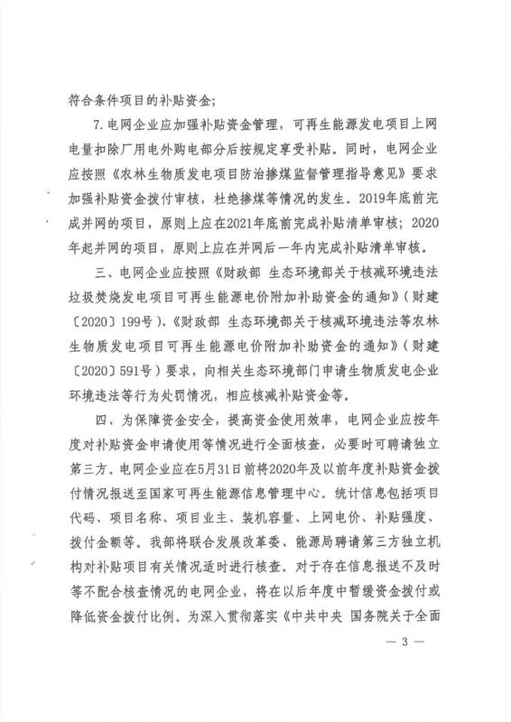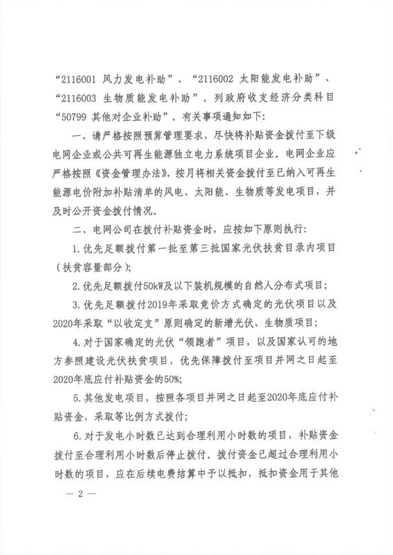 公司嚴(yán)格按照《財(cái)政部關(guān)于下達(dá)2021年可再生能源電價(jià)附加補(bǔ)助資金預(yù)算的通知》(財(cái)資〔2021〕94號(hào))中明確的補(bǔ)貼資金撥付原則和順序,在收到財(cái)政部撥付款項(xiàng)后,對(duì)納入補(bǔ)貼目錄或清單且滿足結(jié)算條件的各類項(xiàng)目進(jìn)行及時(shí)、足額轉(zhuǎn)付。具體原則以各省電力公司公告為準(zhǔn)。