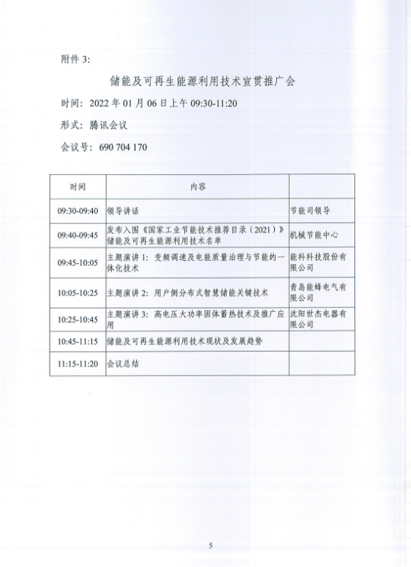 (三) 2022年1月6日,儲能及可再生能源利用技術(shù)宣 貫推廣會(騰訊會議 會議號:690 704 170 );
