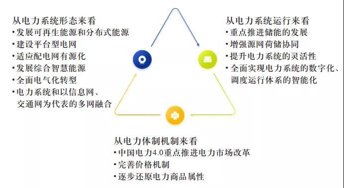 從電力系統(tǒng)形態(tài)來看,中國電力4.0重點發(fā)展可再生能源和分布式能源,建設(shè)平臺型電網(wǎng),適應(yīng)配電網(wǎng)有源化,發(fā)展綜合智慧能源,支撐交通等領(lǐng)域的全面電氣化轉(zhuǎn)型,實現(xiàn)電力系統(tǒng)和以信息網(wǎng)、交通網(wǎng)為代表的多網(wǎng)融合;從電力系統(tǒng)運行來看,中國電力4.0重點推進儲能的發(fā)展,增強源網(wǎng)荷儲協(xié)同,提升電力系統(tǒng)的靈活性,全面實現(xiàn)電力系統(tǒng)的數(shù)字化、調(diào)度運行體系的智能化;從電力體制機制來看,中國電力4.0重點推進電力市場改革,完善價格機制,逐步還原電力商品屬性。