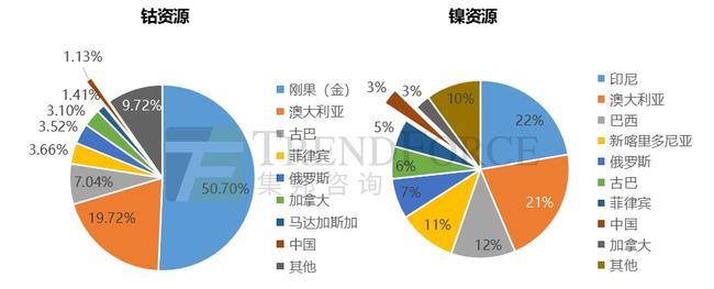 圖5:2020年全球可采鈷、鎳資源儲(chǔ)量分布