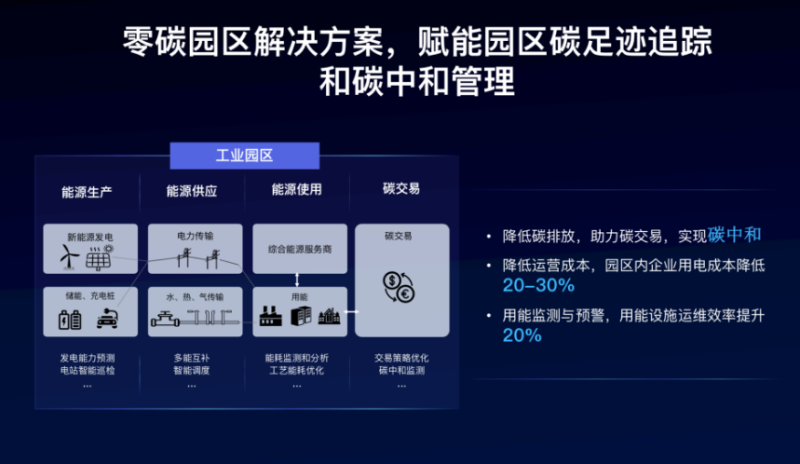 據(jù)介紹,“零碳園區(qū)解決方案”可以為園區(qū)內(nèi)企業(yè)提供發(fā)電能力預(yù)測(cè)、電站智能巡檢、智能調(diào)度、能耗監(jiān)測(cè)和分析、碳中和監(jiān)測(cè)等AI能力,賦能園區(qū)碳足跡追蹤和碳中和管理,降低碳排放,助力碳交易。