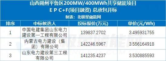 中國儲能網(wǎng)訊:1月5日,山西朔州又一大規(guī)模儲能項目開標(biāo)!第一中標(biāo)候選人中國電建山東電建第一工程公司、其報價最低為3.5元/Wh。