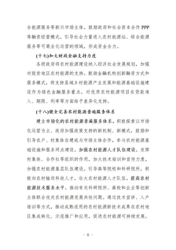 中國(guó)儲(chǔ)能網(wǎng)訊:12月29日,國(guó)家能源局、農(nóng)業(yè)農(nóng)村部、國(guó)家鄉(xiāng)村振興局印發(fā)《加快農(nóng)村能源轉(zhuǎn)型發(fā)展助力鄉(xiāng)村振興的實(shí)施意見(jiàn)》的通知,主要目標(biāo)是到2025年,建成一批農(nóng)村能源綠色低碳試點(diǎn),風(fēng)電、太陽(yáng)能、生物質(zhì)能、地?zé)崮艿日嫁r(nóng)村能源的比重持續(xù)提升,農(nóng)村電網(wǎng)保障能力進(jìn)一步增強(qiáng),分布式可再生能源發(fā)展壯大,綠色低碳新模式新業(yè)態(tài)得到廣泛應(yīng)用,新能源產(chǎn)業(yè)成為農(nóng)村經(jīng)濟(jì)的重要補(bǔ)充和農(nóng)民增收的重要渠道,綠色、多元的農(nóng)村能源體系加快形成。
