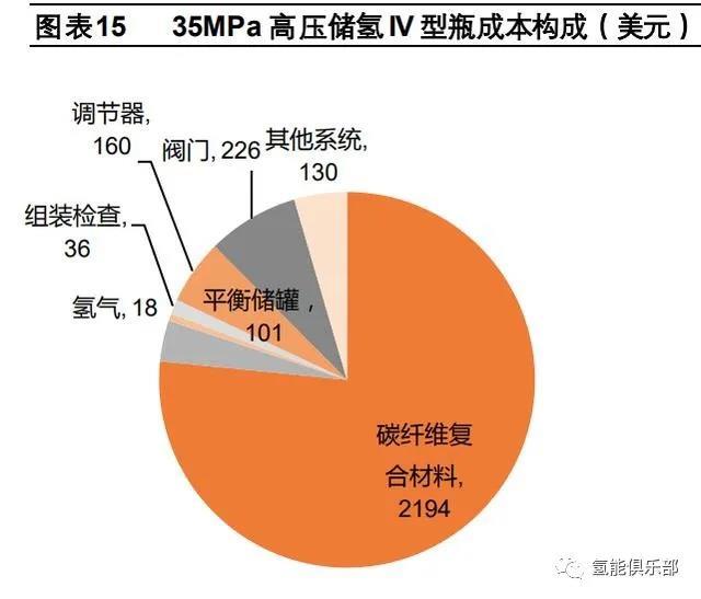 (2)車用儲氫瓶材料中碳纖維復(fù)合材料成本占比高